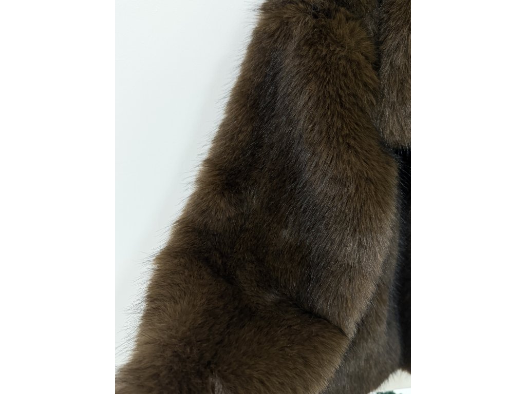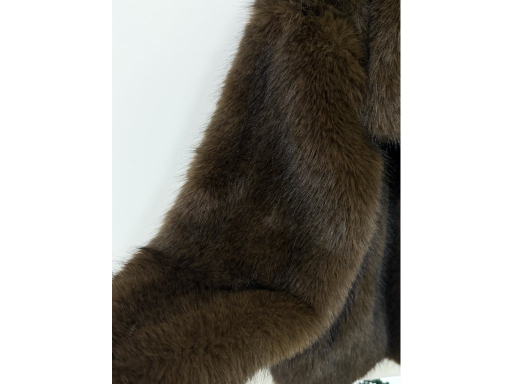 Stylový a nadčasový kožich v hlubokém hnědém tónu, který dodá každému outfitu nádech elegance a luxusu. Hebký, na dotek velmi příjemný materiál zajišťuje maximální komfort a teplo i v chladných dnech. Precizní zpracování, jemný lesk a propracovaný střih vytvářejí sofistikovaný vzhled, který se hodí jak ke společenským, tak i k ležérním outfitům. Ideální volba pro ženy, které chtějí spojit eleganci, pohodlí a výrazný styl.